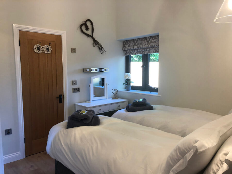 Take the A4538 to Evesham. At the next roundabout turn left to Crowle, then take the first right to Crowle and HImbleton. Follow this road for four miles, and then turn right into Himbleton, follow Harrow Lane, past the Galton Arms pub on your right, go over the little bridge, then take a left hand turn towards Hanbury and Bradley Green and continue for three miles along this lane and you will see a left hand turn saying Hanbury Via Ford, continue PAST this sign and we are the first driveway on your left with a gated entrance.